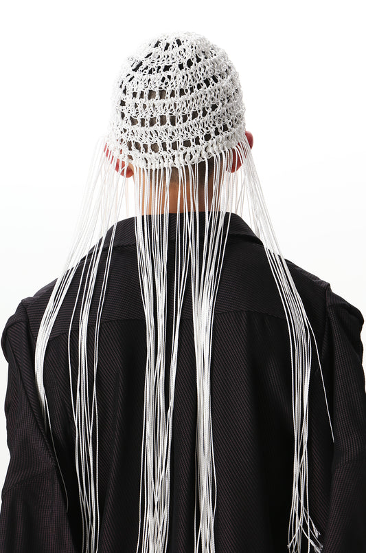 White Hand Crochet Fringe Beanie